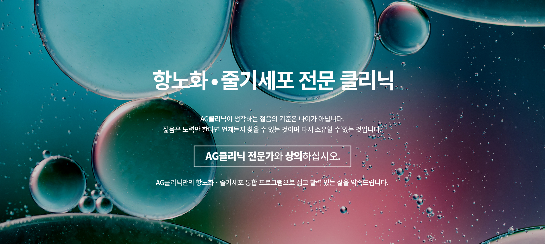AG클리닉이 개발한 21년간의 다양한 항노화 치료 프로그램과 줄기세포 치료를 결합하여